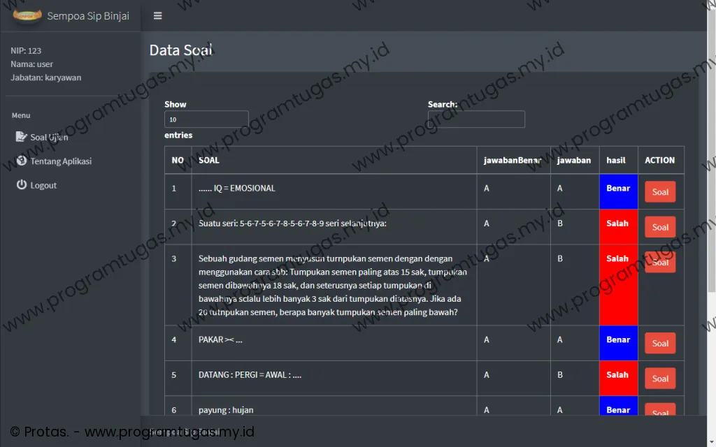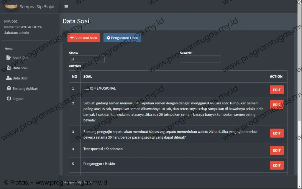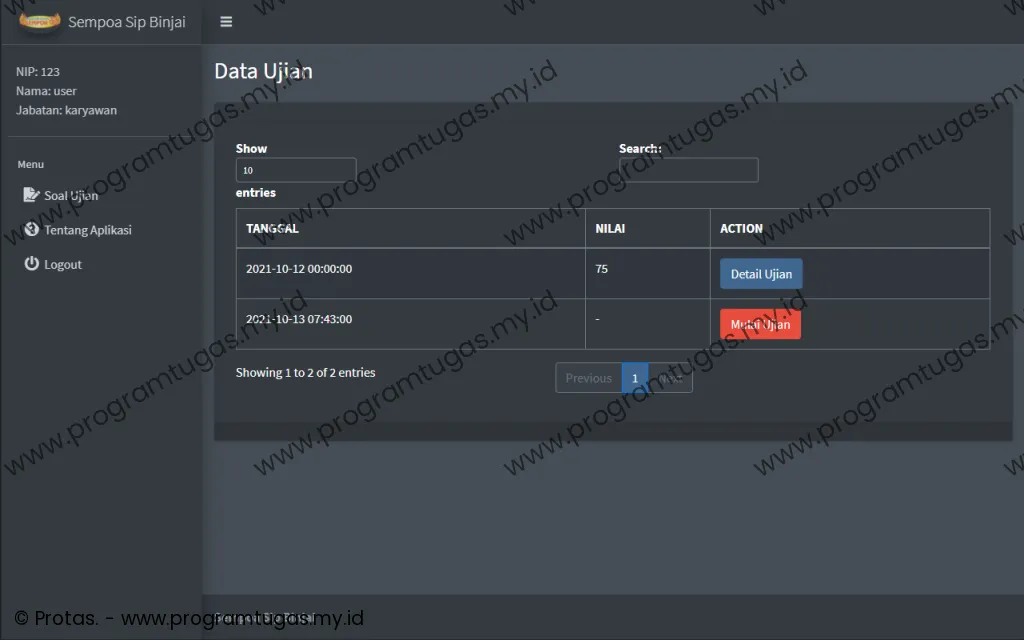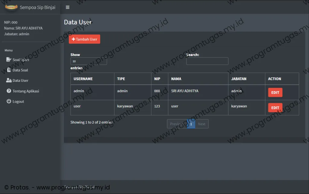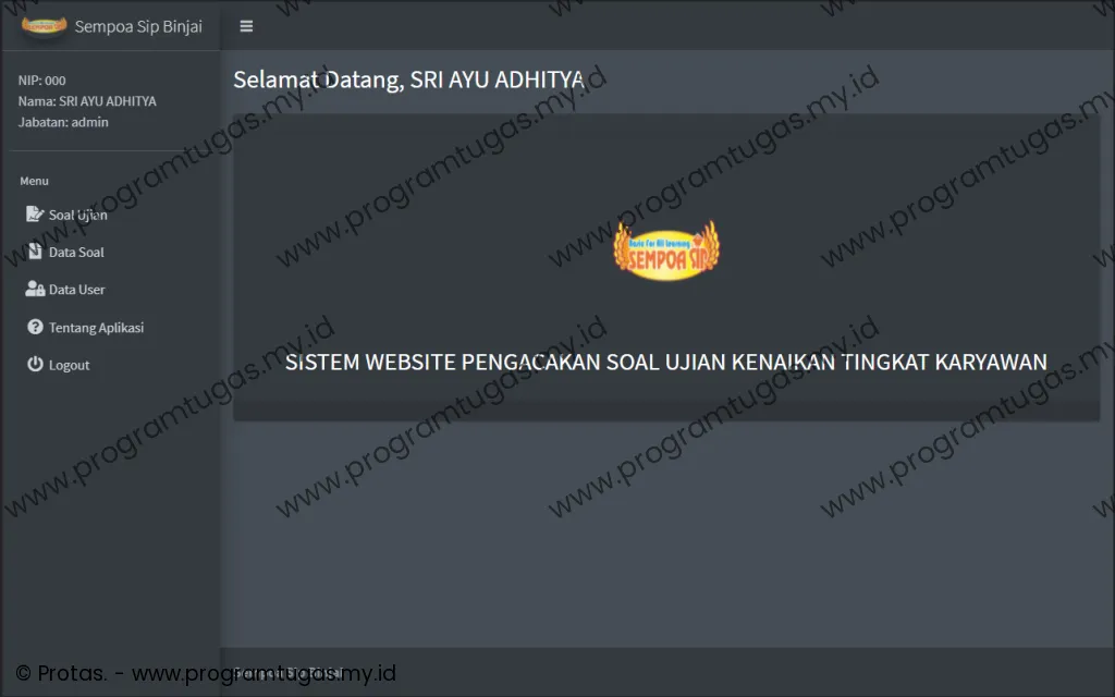 - Program ini hanya untuk ruang lingkup keperluan: skripsi, tugas akhir, tugas mahasiswa dan bukan untuk versi live/publish/produksi. Sehingga bug, efisiensi, keamanan dan stabilitas sistem tidak di utamakan. Untuk pembuatan program yang mengutamakan efisiensi, keamanan dan stabilitas sistem, silahkan klik disini.