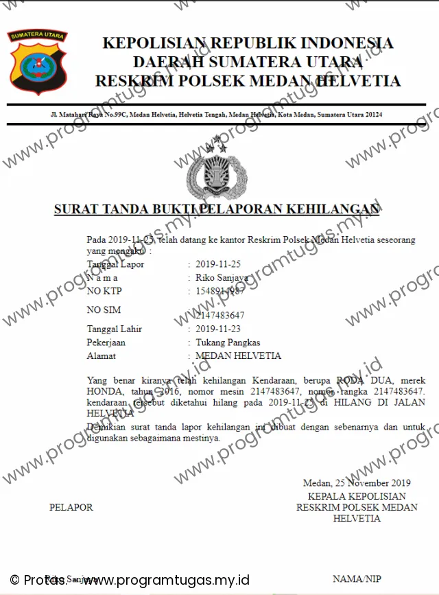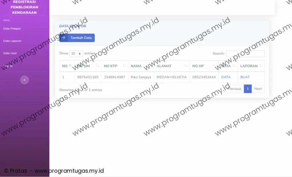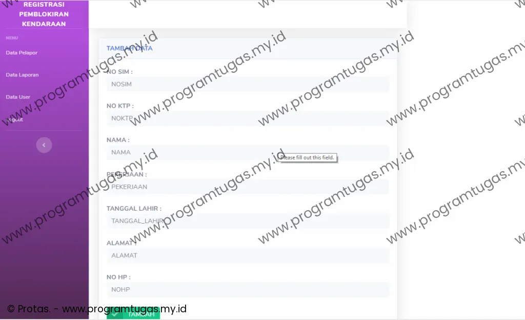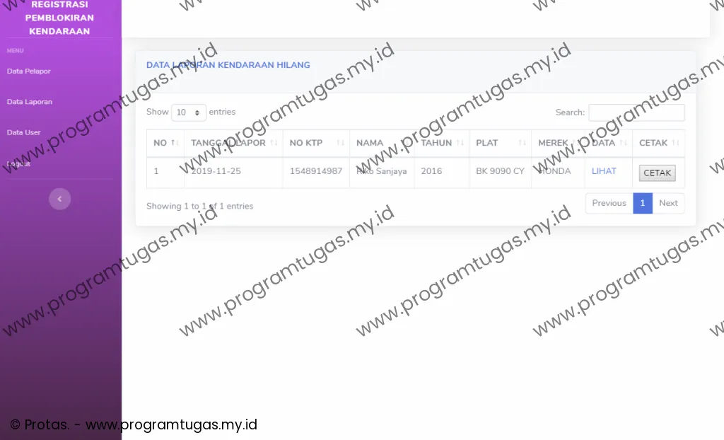 registrasi pengurusan pemblokiran kendaraan hilang berbasis web dengan sms gateway
