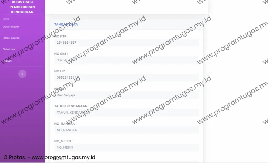 - Program ini hanya untuk ruang lingkup keperluan: skripsi, tugas akhir, tugas mahasiswa dan bukan untuk versi live/publish/produksi. Sehingga bug, efisiensi, keamanan dan stabilitas sistem tidak di utamakan. Untuk pembuatan program yang mengutamakan efisiensi, keamanan dan stabilitas sistem, silahkan klik disini.