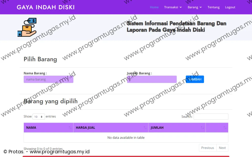 - Program ini hanya untuk ruang lingkup keperluan: skripsi, tugas akhir, tugas mahasiswa dan bukan untuk versi live/publish/produksi. Sehingga bug, efisiensi, keamanan dan stabilitas sistem tidak di utamakan. Untuk pembuatan program yang mengutamakan efisiensi, keamanan dan stabilitas sistem, silahkan klik disini.
