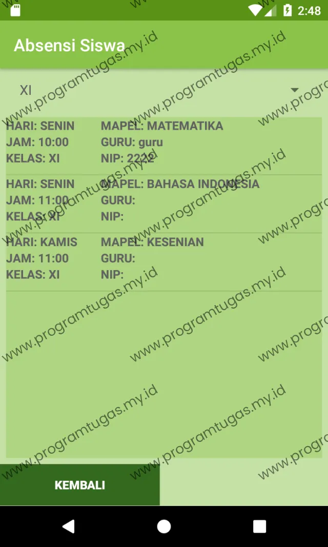 Aplikasi sistem pemberitahuan jadwal belajar menggunakan program aplikasi yang berbasis android dengan C# sebagai Bahasa pemrogramannya. Program yang penulis buat cukup sederhana dan mudah untuk digunakan karena siswa dapat melihat jadwal pelajaran dan absensinya dengan mudah hanya tinggal menekan tombol yang tersedia pada aplikasi. Guru juga dimudahkan dengan dapat melakukan absensi kepada siswa yang hadir maupun yang tidak menggunakan aplikasi.