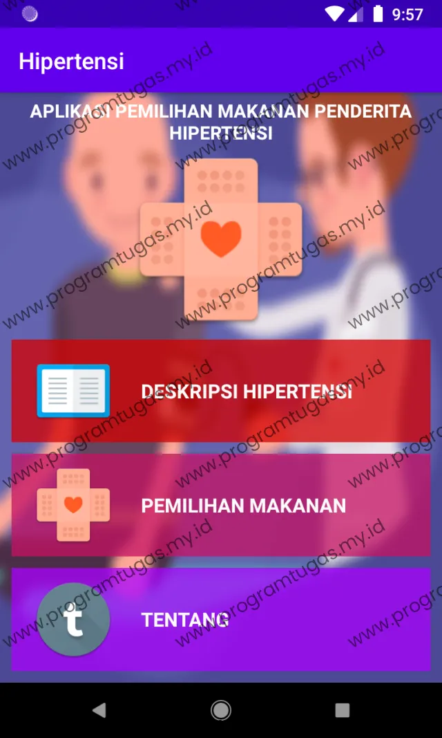 Aplikasi pemilihan makanan penderita hipertensi berbasis android dengan C# sebagai bahasa pemrogramannya. Didalam aplikasi tersebut, pengguna hanya memilih makanan-makanan yang akan dikonsumsi kemudian aplikasi akan melakukan kalkulasi berdasarkan nilai dari kriteria makanan tersebut. Sehingga didapatkan hasil dari seleksi makanan yang dipilih sebelumnya.