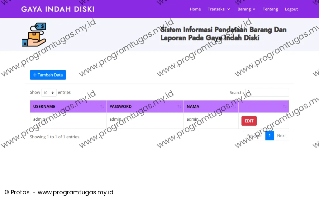 - Program ini hanya untuk ruang lingkup keperluan: skripsi, tugas akhir, tugas mahasiswa dan bukan untuk versi live/publish/produksi. Sehingga bug, efisiensi, keamanan dan stabilitas sistem tidak di utamakan. Untuk pembuatan program yang mengutamakan efisiensi, keamanan dan stabilitas sistem, silahkan klik disini.